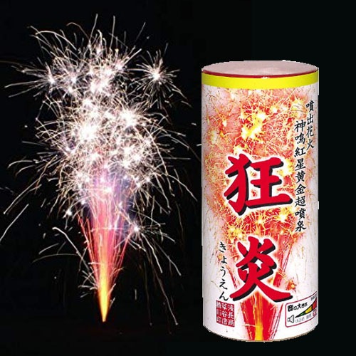- 高さ約5mまでパチパチ火花が舞い上がります。銀色の炎を激しく噴き出し、その中を真紅の星が飛び散ります。燃焼時間は約5秒ほどですが、その派手な華麗さに目を奪われること間違いなし!