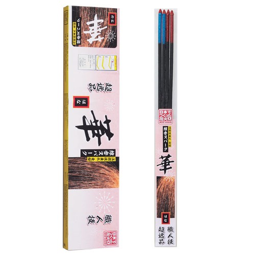 - 点火薬部分が鮮やかにカラーリングされた国産和火スパークラー。金色の無数の線香火花が地上へと降り注ぎます。燃焼時間約60秒。