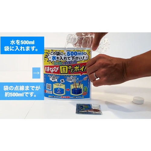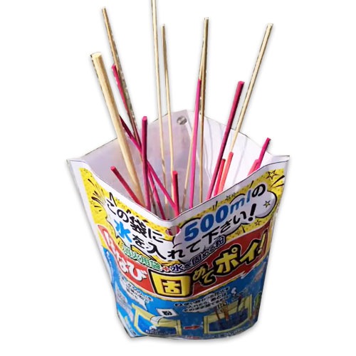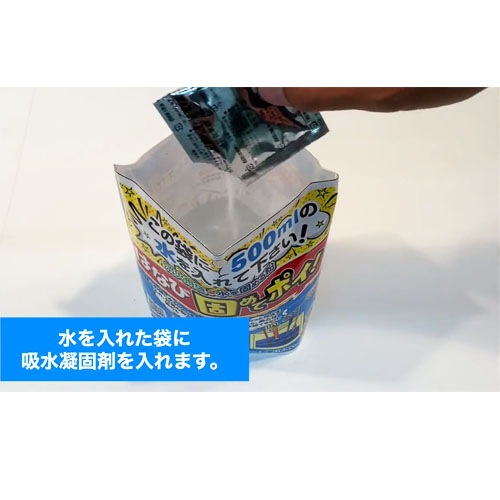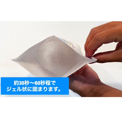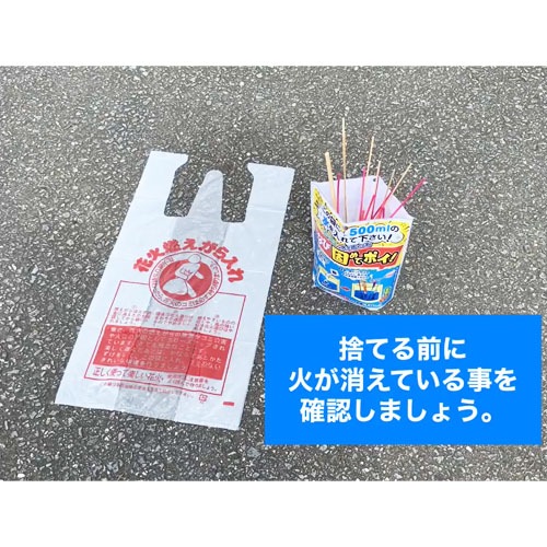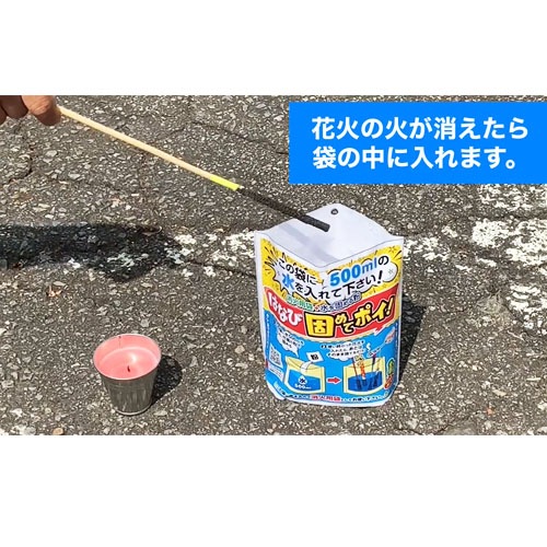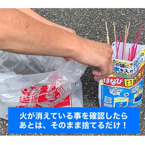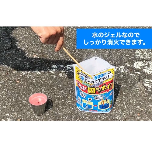 - 製品内に入っている専用の凝固剤で水を固めて使用する手持ち花火専用の消火具です。