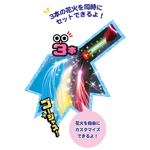 - 3本の手持ち花火を同時にセットして、楽しめるスティックです。ルミカライトとの共同制作。付属のルミカライトでより豪華にできます。