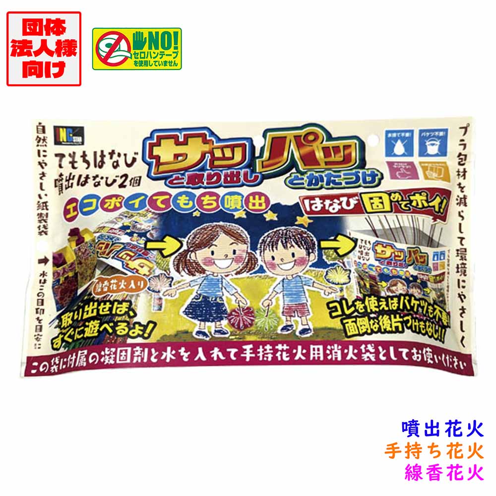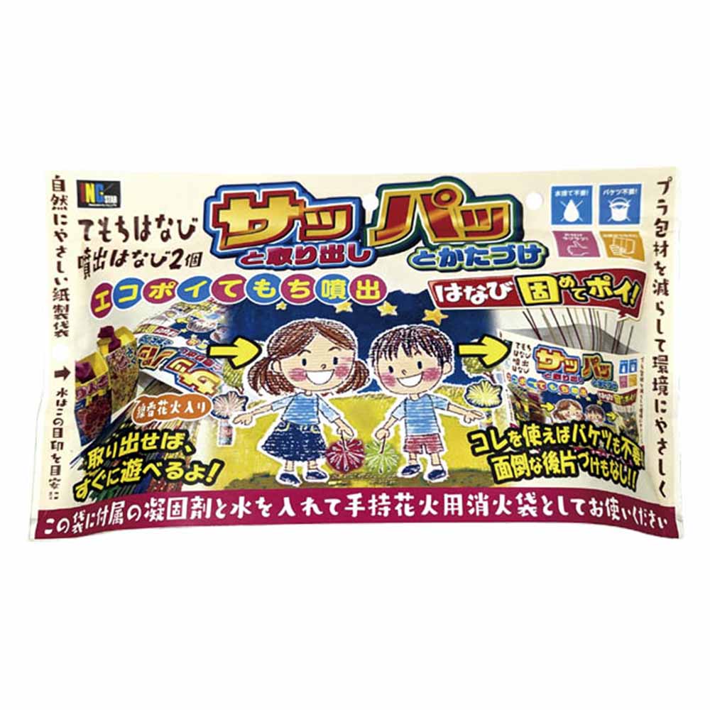 - 噴出花火2個入り。手持花火の小袋を削減したので取り出してすぐ遊べます。