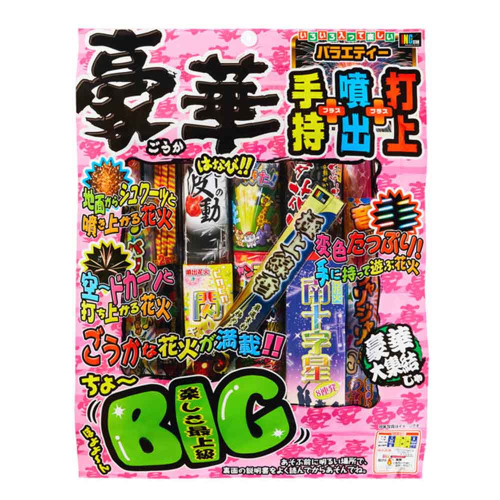 打上花火3本、連発花火1本、噴出花火3本、手持花火14本、線香花火3本