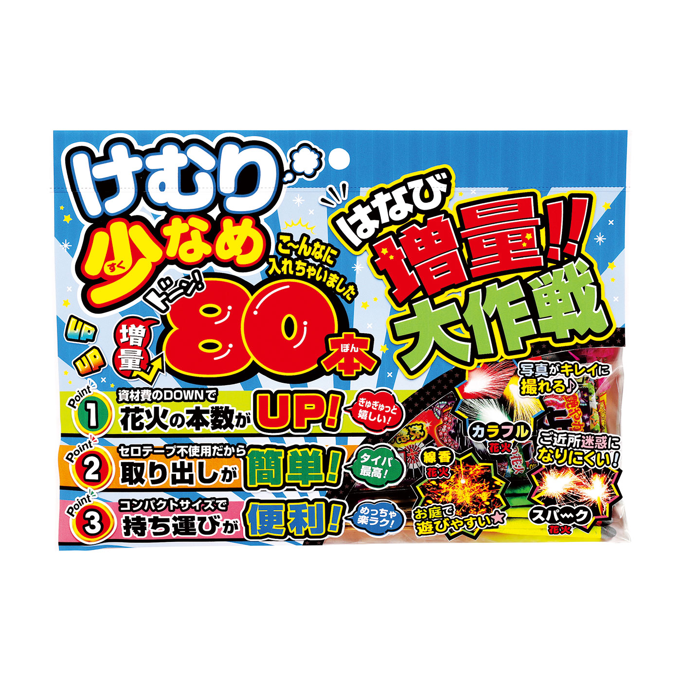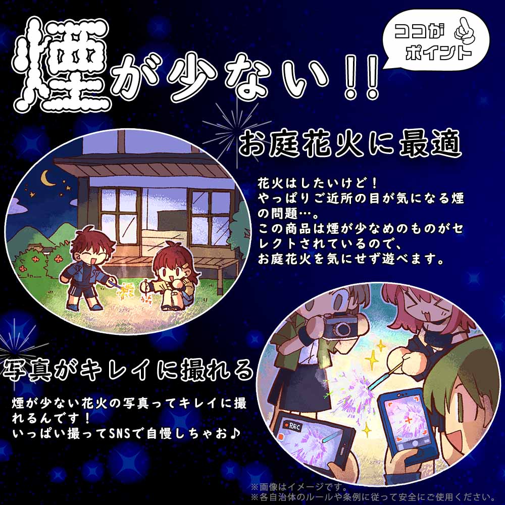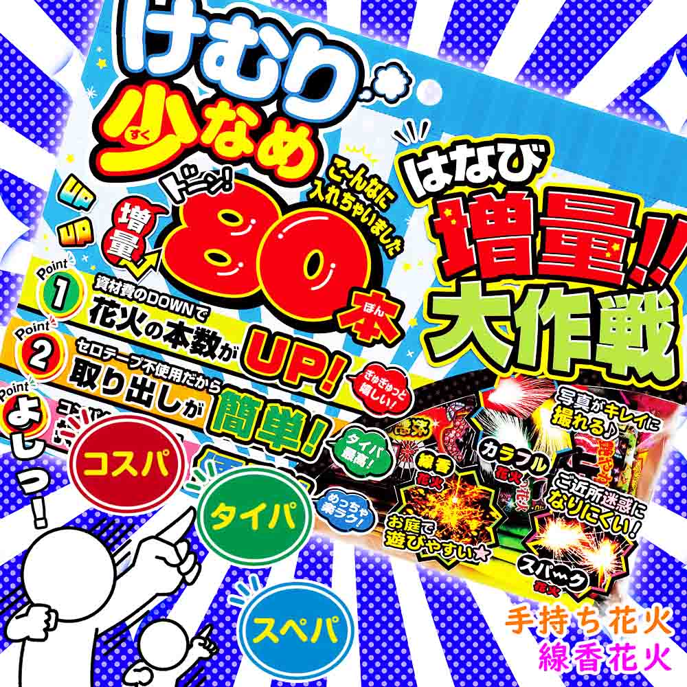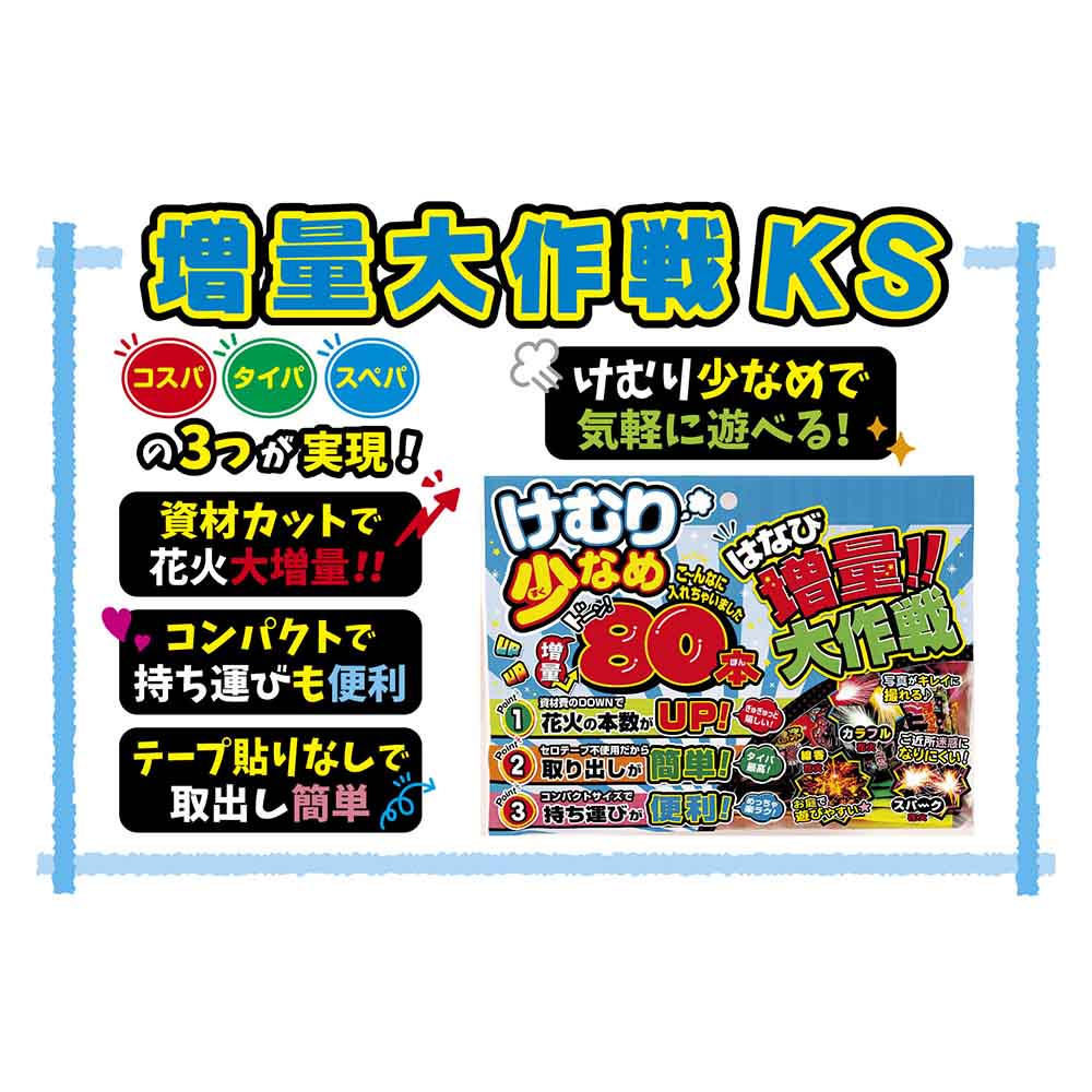 資材カットで花火が大増量!コンパクトで持ち運びも楽々!!セロハンテープ不使用ですぐ遊べちゃうのが嬉しいセットです!